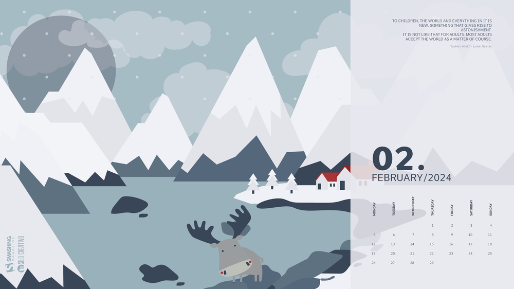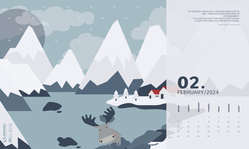 The shortest month of the year is not so short and gives us one more day to share, enjoy, and discover. We have been to Antarctica and we are going to almost the opposite extreme, Norway, to navigate through its fjords and discover unique spaces. And there, where the only company is a moose that has come down to drink, we remember Sophie and her particular way of seeing the world: ‘To children, the world and everything in it is new, something that gives rise to astonishment. It is not like that for adults. Most adults accept the world as a matter of course.’ Sophie’s World - Jostein Gaarder — Designed by Veronica Valenzuela from Spain.
