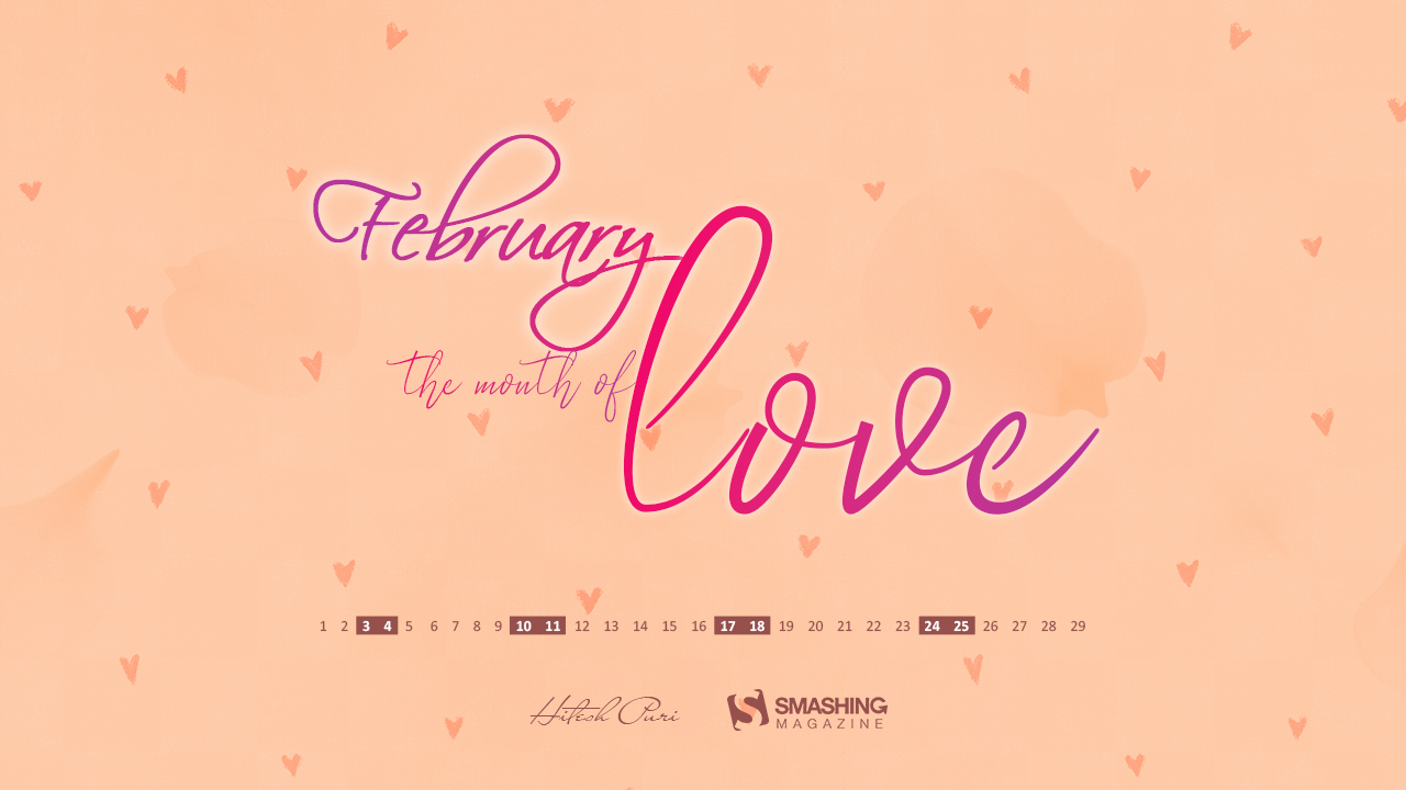 We’re celebrating Valentine’s Day with our February wallpaper. Whatever Valentine’s Day means to you, we’re on board. Love, relationships, or the best of friends, it’s something to be celebrated! — Designed by Focus from the United Kingdom.