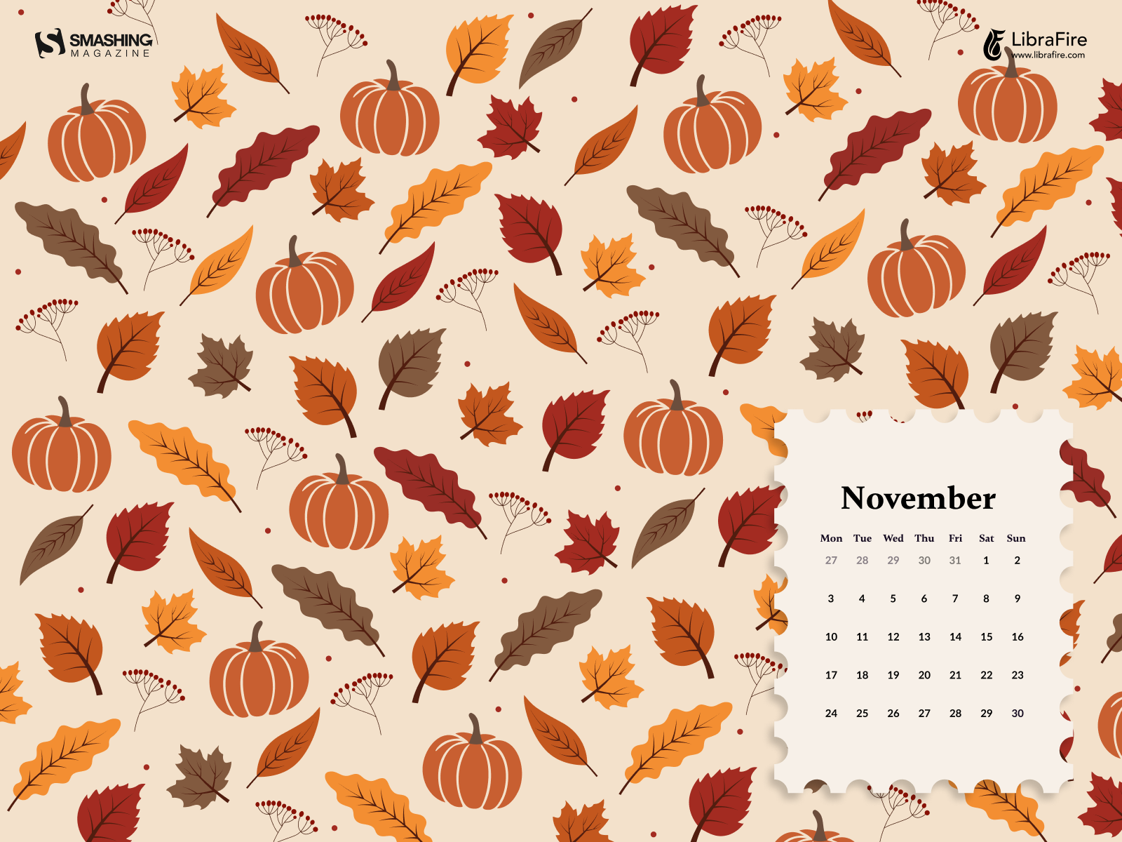 Celebrate the heart of fall with cozy colors, crisp leaves, and the gentle warmth that only November brings. — Designed by Libra Fire from Serbia.