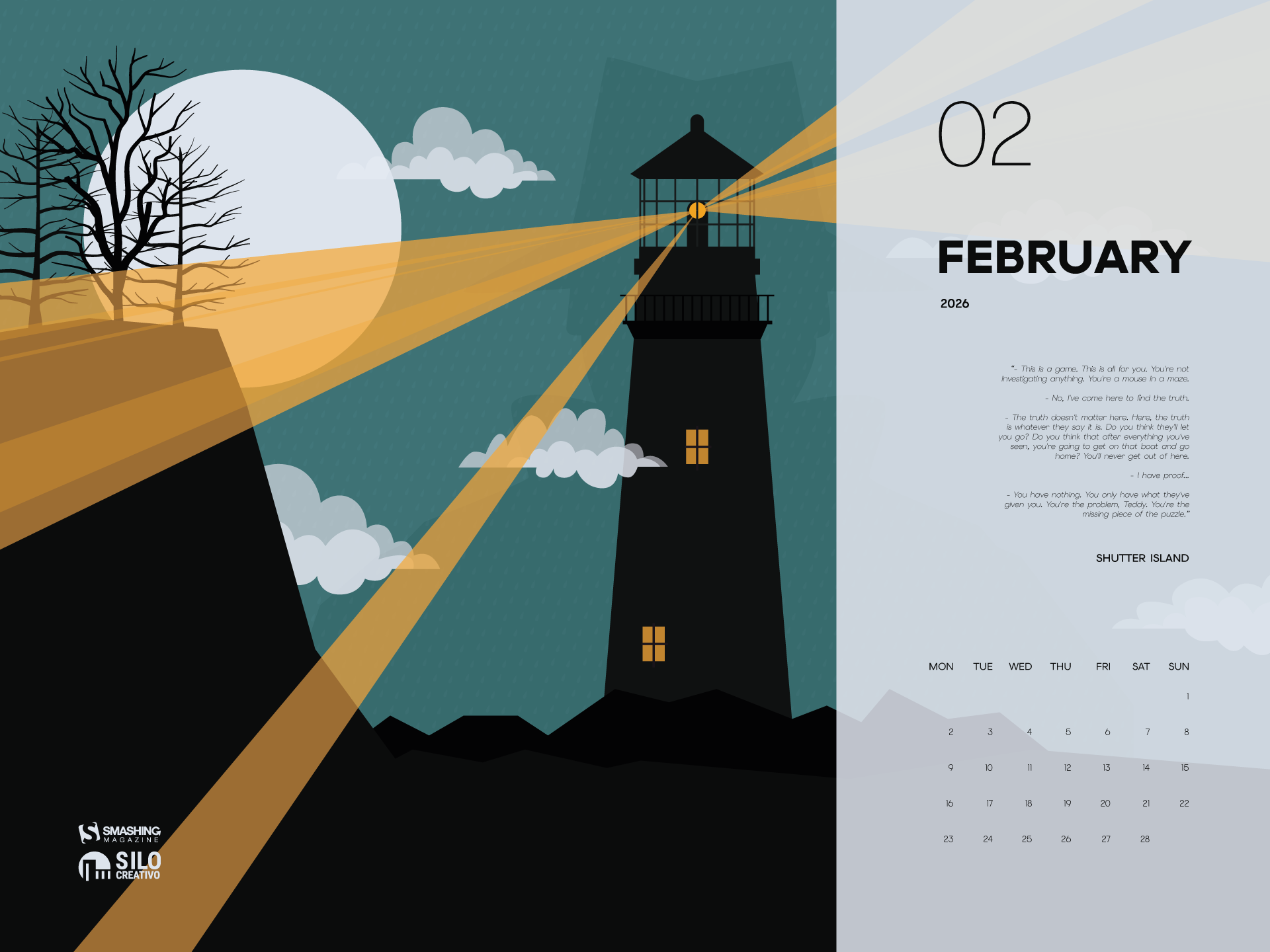 We continue the film saga. This time, we go to the mysterious Shutter Island, a lighthouse with many mysteries that will absorb you. — Designed by Veronica Valenzuela from Spain.
